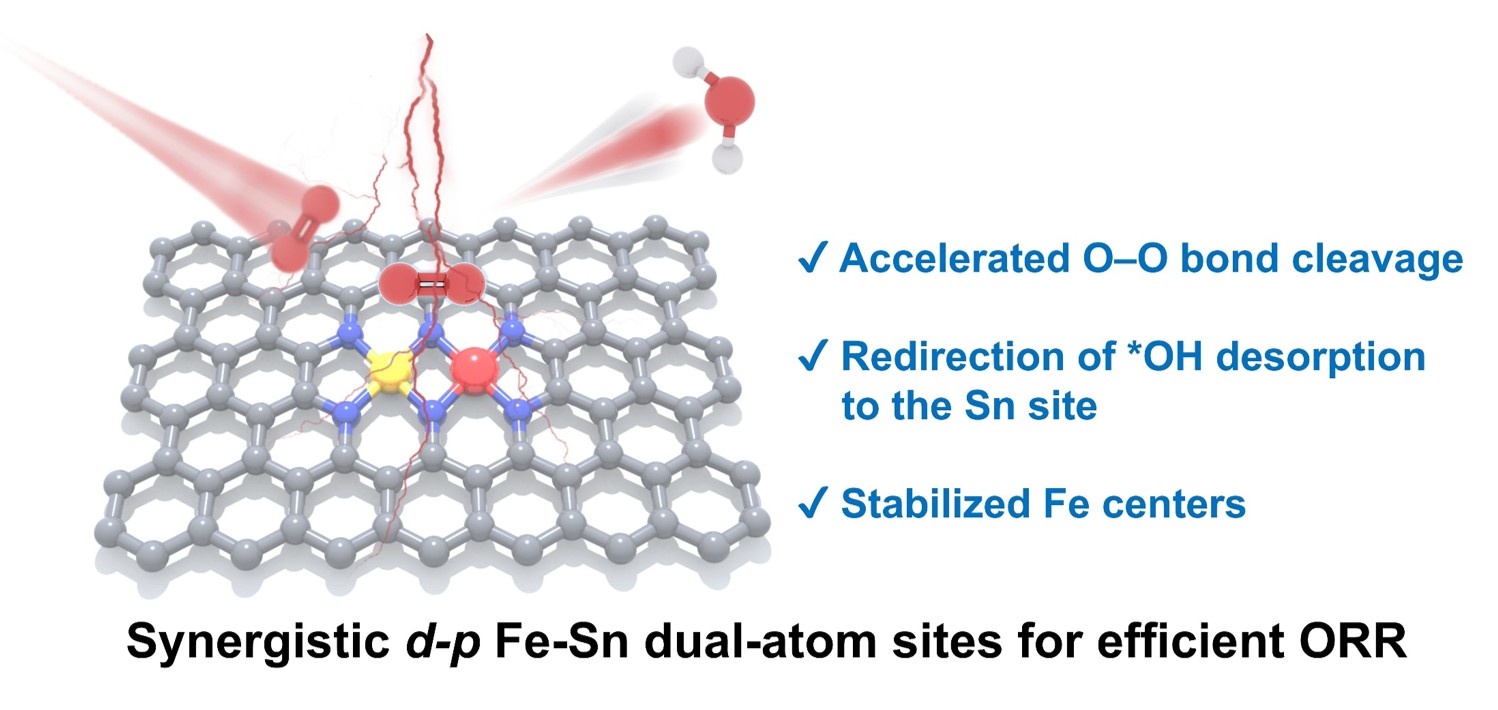 文章信息:Chao Zhang+, Yushan Guo+, Chang Chen+, Zewen Zhuang,* Shengping You, Mingyu Yu, Xin Tan, Kaian Sun, Qing Peng, Wei Yan,* Jiujun Zhang,* and Chen Chen* Accelerated O─O Bond Cleavage and Stabilized Fe Sites by Synergistic d─p Fe─Sn Dual-Atom Pair for Enhanced Oxygen Reduction. Angew. Chem. Int. Ed. 2026, e24265.