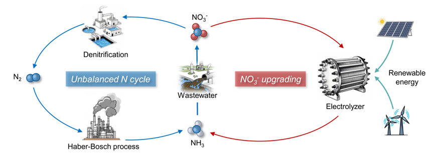 可再生能源驱动的电催化硝酸根还原反应(NO3-RR)为将NO3-升级转化为NH3提供了一条环境友好的路径。然而,大多数NO3-RR催化剂的工作电位低于0 V(vs. RHE),远低于其理论电位(0.69 V vs. RHE),导致能源效率低(<40%)、综合能耗高。为推进电化学硝酸根还原的工业化进程,亟需开发能在正电位下工作的高性能催化剂,以提高硝酸根电还原的能源效率并降低能耗。NO3-吸附是决定NO3-RR反应进行的第一步。过强的吸附会导致活性位点中毒,而过弱的吸附则会阻碍后续的还原步骤。NO3-吸附后,NO3-RR路径需经历连续的九步加氢反应,这需要持续的活性氢(*H)供给。然而,通过单一的催化剂调控策略以协同优化NO3-吸附与水解离仍具有挑战性。